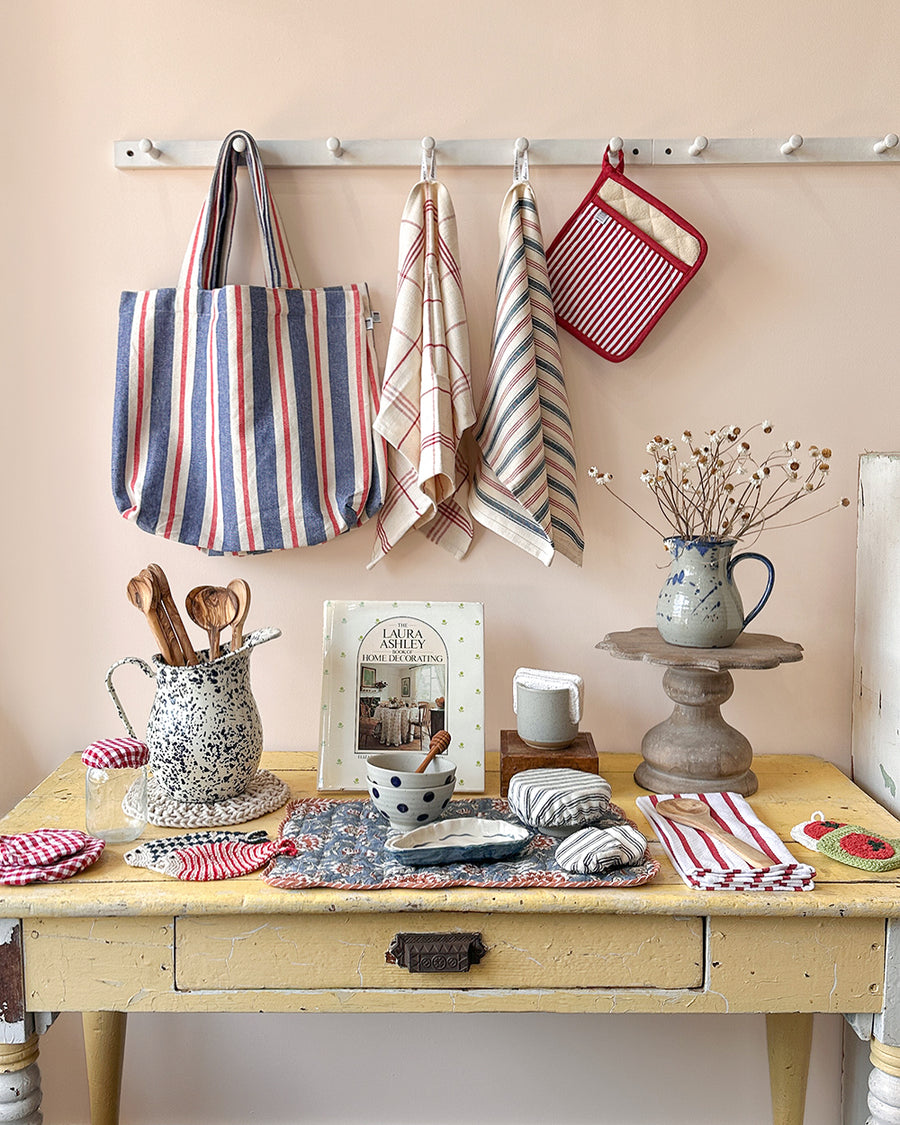 Get a splash of vibrant color with this cherry-red striped potholder. Perfect for protecting your hands while cooking, this cotton essential combines practical functionality with charm. 8" x 9" 100% cotton / 100% polyester fill Care instructions: machine wash warm,...